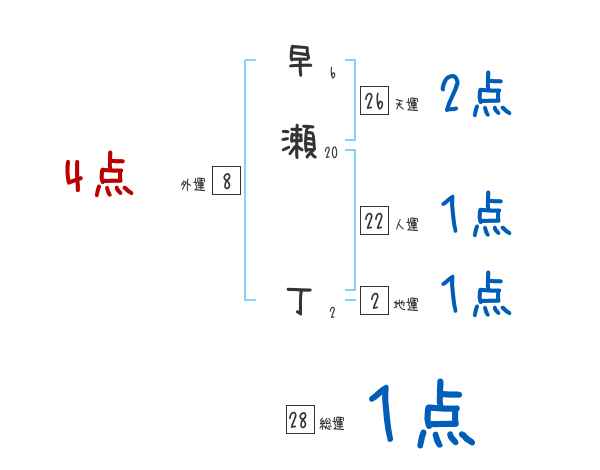 天運![]() | 早瀬丁さんの天運は26画の2つ星!波瀾万丈かも。信頼できる人を大事にしましょう。 家系が持つ宿命的な運勢を表します。祖先から受け継いだ苗字ですので自分の力が及びません。家柄を象徴します。 |
