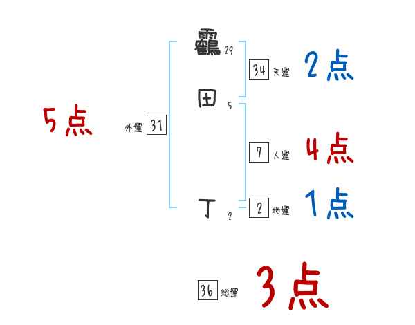 総運![]() | 靏田丁さんの総運は36画の3つ星!先見性が豊かです。多少神経質で苦労することも。 あなたの人生を表す1番重要な運勢です。生涯を通じて影響する総合運となり、主に50歳以降の晩年期に影響を及ぼします。 |