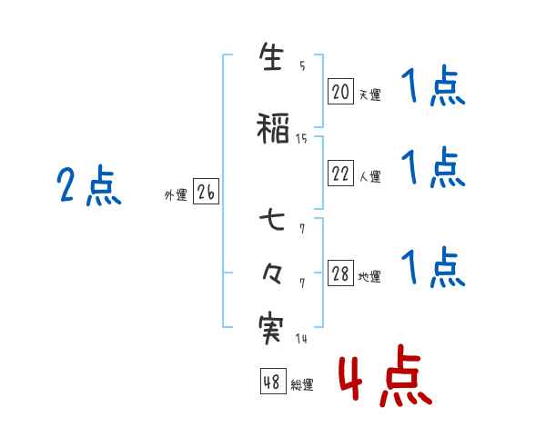 生稲七々実さんの画数の鑑定結果