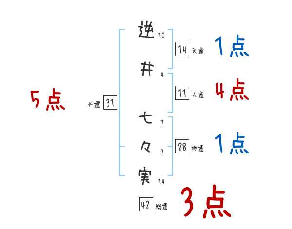 外運![]() | 逆井七々実さんの外運は31画の5つ星!社交性があり判断力に優れる。順風満帆な人生で円満な生活。 生活面を象徴する運勢です。外部から受ける影響力を表し、結婚運、家庭運や職場、環境への順応性を表します。 |