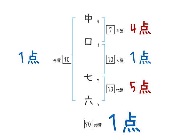 中口七六さんの画数の鑑定結果