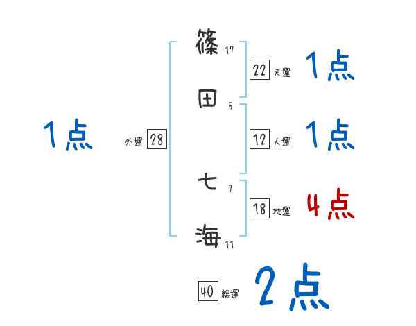 外運![]() | 篠田七海さんの外運は28画の1つ星!家庭環境に注意。スポーツで活躍できる能力があるかも。 生活面を象徴する運勢です。外部から受ける影響力を表し、結婚運、家庭運や職場、環境への順応性を表します。 |