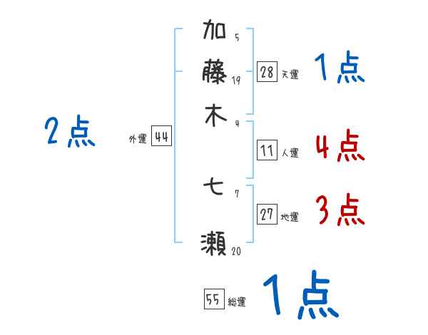 加藤木七瀬さんの画数の鑑定結果