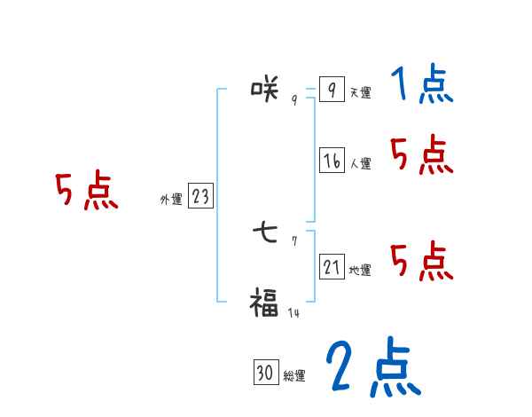 天運![]() | 咲七福さんの天運は9画の1つ星!消極的で才能を発揮することが苦手なことも。周りの意見に耳を傾けましょう。 家系が持つ宿命的な運勢を表します。祖先から受け継いだ苗字ですので自分の力が及びません。家柄を象徴します。 |
