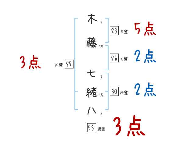 木藤七緒八さんの画数の鑑定結果