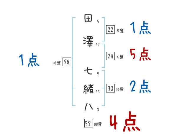 田澤七緒八さんの画数の鑑定結果