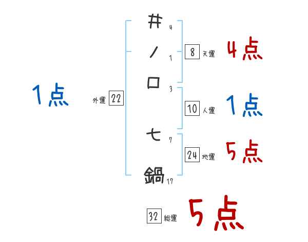 総運![]() | 井ノ口七鍋さんの総運は32画の5つ星!柔軟性があり成功する。チャンスが多く金運が良い。 あなたの人生を表す1番重要な運勢です。生涯を通じて影響する総合運となり、主に50歳以降の晩年期に影響を及ぼします。 |