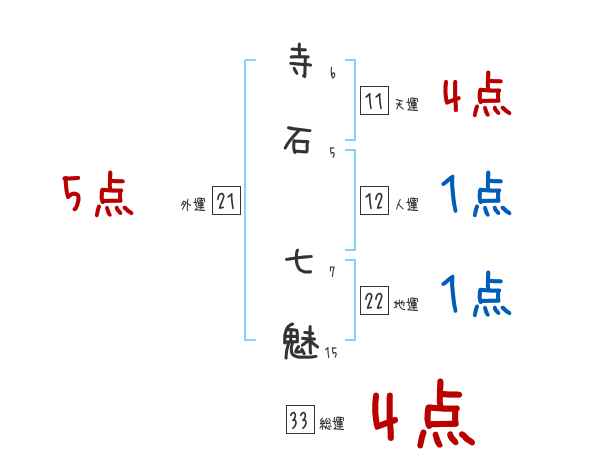 家系が持つ宿命的な運勢を表します。祖先から受け継いだ苗字ですので自分の力が及びません。家柄を象徴します。