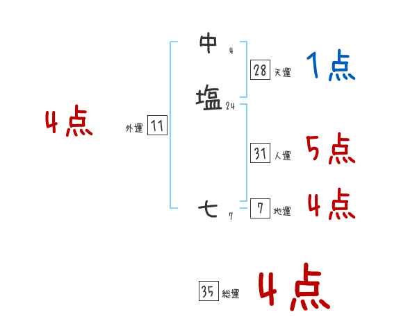 中塩七さんの画数の鑑定結果
