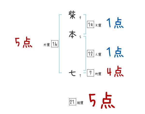 柴本七さんの画数の鑑定結果