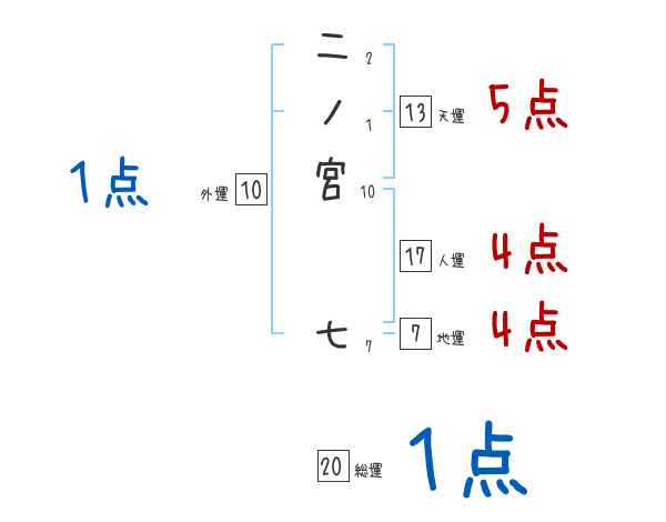 二ノ宮七さんの画数の鑑定結果