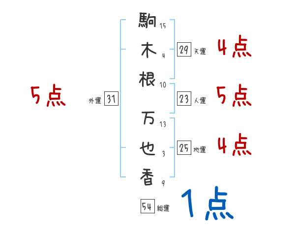 駒木根万也香さんの画数の鑑定結果
