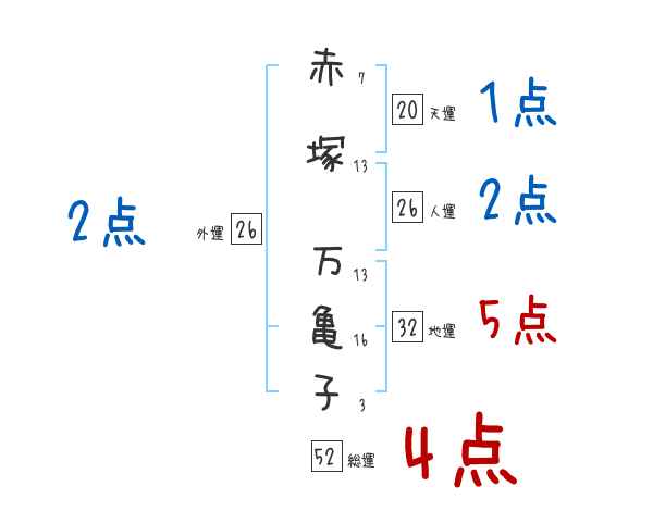 赤塚万亀子さんの画数の鑑定結果