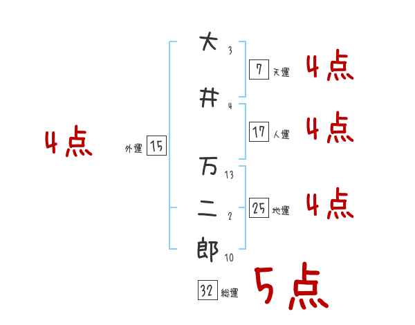 大井万二郎さんの画数の鑑定結果