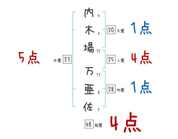 外運![]() | 内木場万亜佐さんの外運は23画の5つ星!想像力に優れ活力がある。一代で成功し名誉を手に入れる。 生活面を象徴する運勢です。外部から受ける影響力を表し、結婚運、家庭運や職場、環境への順応性を表します。 |