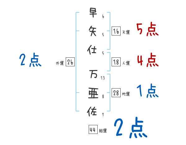 早矢仕万亜佐さんの画数の鑑定結果