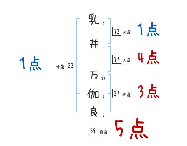 乳井万伽良さんの画数の鑑定結果