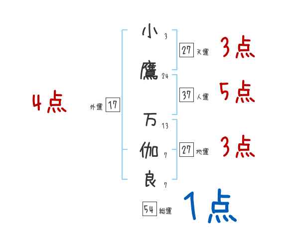 小鷹万伽良さんの画数の鑑定結果