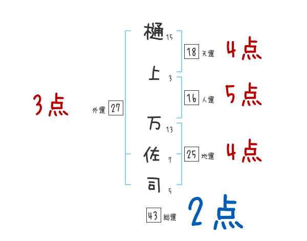 樋上万佐司さんの画数の鑑定結果