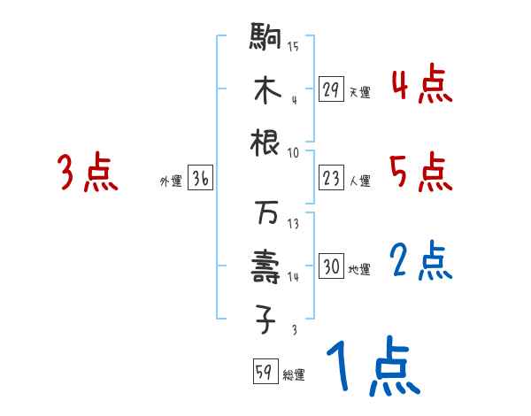 駒木根万壽子さんの画数の鑑定結果