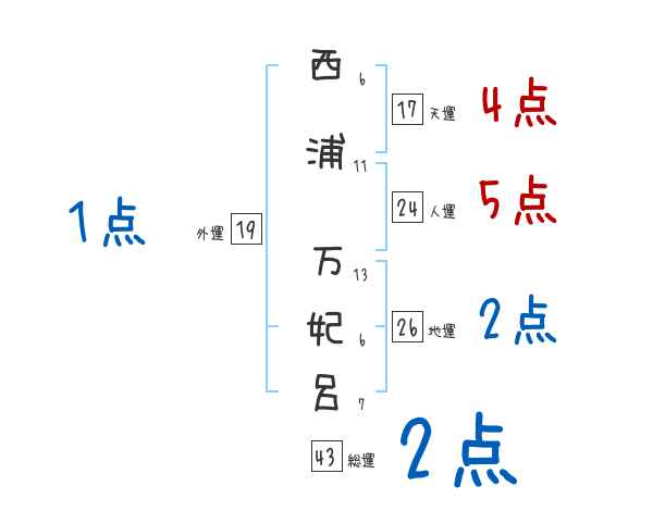 西浦万妃呂さんの画数の鑑定結果