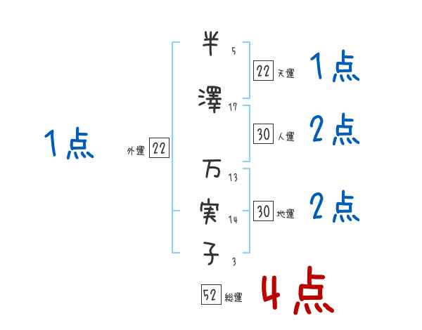 外運![]() | 半澤万実子さんの外運は22画の1つ星!努力することが苦手ないっぽう手先が器用。芸術性にも優れる。 生活面を象徴する運勢です。外部から受ける影響力を表し、結婚運、家庭運や職場、環境への順応性を表します。 |
