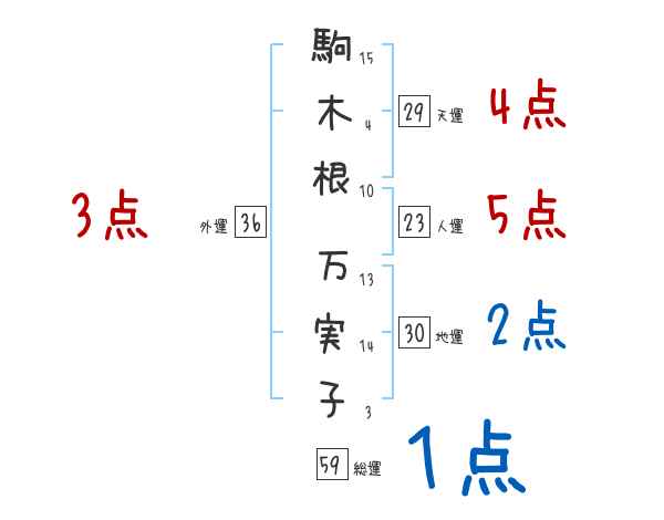 駒木根万実子さんの画数の鑑定結果