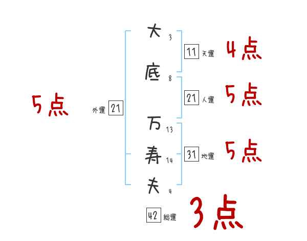 大底万寿夫さんの画数の鑑定結果