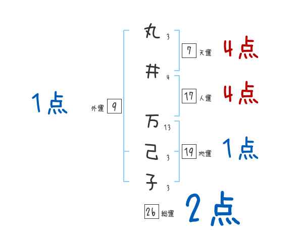 天運![]() | 丸井万己子さんの天運は7画の4つ星!強い意志や信念を持ち独立心が強い。自立する。 家系が持つ宿命的な運勢を表します。祖先から受け継いだ苗字ですので自分の力が及びません。家柄を象徴します。 |