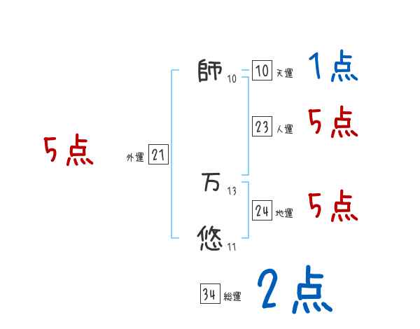 師万悠さんの画数の鑑定結果