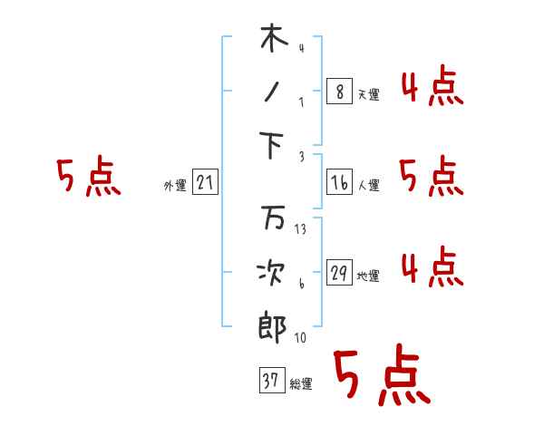 木ノ下万次郎さんの画数の鑑定結果