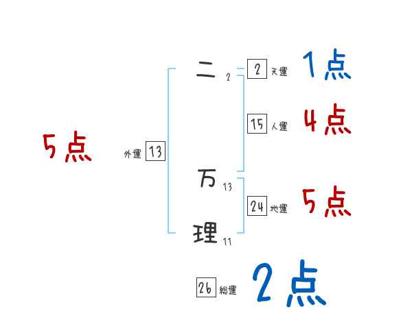 総運![]() | 二万理さんの総運は26画の2つ星!波瀾万丈かも。信頼できる人を大事にしましょう。 あなたの人生を表す1番重要な運勢です。生涯を通じて影響する総合運となり、主に50歳以降の晩年期に影響を及ぼします。 |