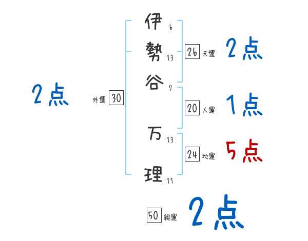 天運![]() | 伊勢谷万理さんの天運は26画の2つ星!波瀾万丈かも。信頼できる人を大事にしましょう。 家系が持つ宿命的な運勢を表します。祖先から受け継いだ苗字ですので自分の力が及びません。家柄を象徴します。 |