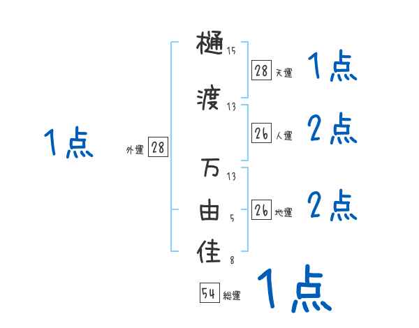 天運![]() | 樋渡万由佳さんの天運は28画の1つ星!家庭環境に注意。スポーツで活躍できる能力があるかも。 家系が持つ宿命的な運勢を表します。祖先から受け継いだ苗字ですので自分の力が及びません。家柄を象徴します。 |