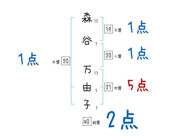 天運![]() | 森谷万由子さんの天運は19画の1つ星!優れた才能を持ちますが、協調性が足りないことも。周りの人と協力する事を意識しましょう。 家系が持つ宿命的な運勢を表します。祖先から受け継いだ苗字ですので自分の力が及びません。家柄を象徴します。 |