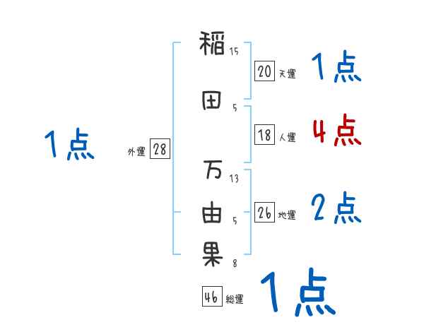 稲田万由果さんの画数の鑑定結果