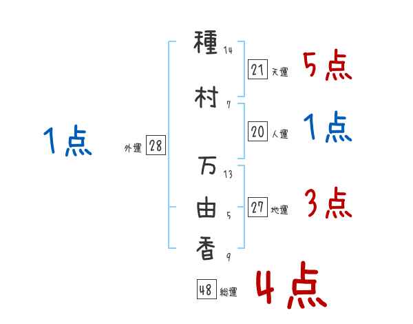 外運![]() | 種村万由香さんの外運は28画の1つ星!家庭環境に注意。スポーツで活躍できる能力があるかも。 生活面を象徴する運勢です。外部から受ける影響力を表し、結婚運、家庭運や職場、環境への順応性を表します。 |