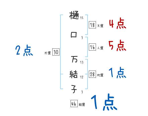 樋口万結子さんの画数の鑑定結果