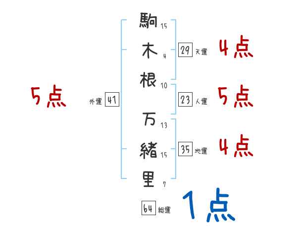 駒木根万緒里さんの画数の鑑定結果