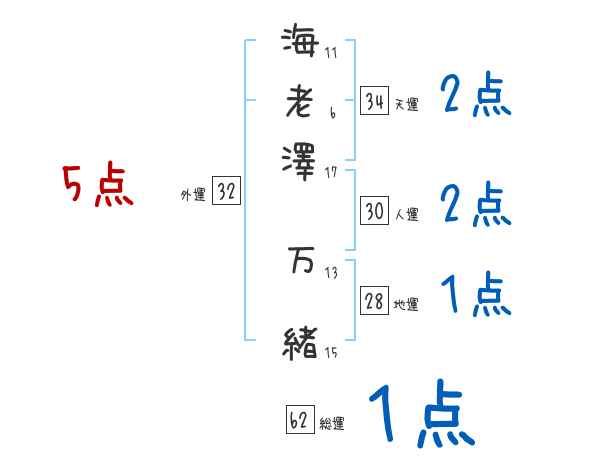 海老澤万緒さんの画数の鑑定結果