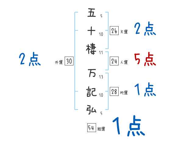 外運![]() | 五十棲万記弘さんの外運は30画の2つ星!浮き沈みの激しさに注意しましょう。 生活面を象徴する運勢です。外部から受ける影響力を表し、結婚運、家庭運や職場、環境への順応性を表します。 |