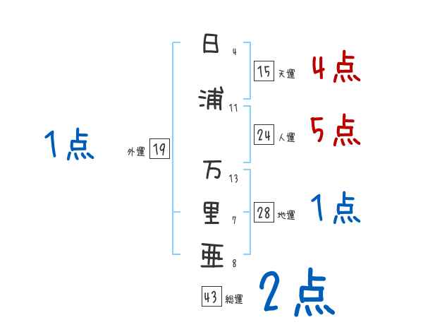 日浦万里亜さんの画数の鑑定結果