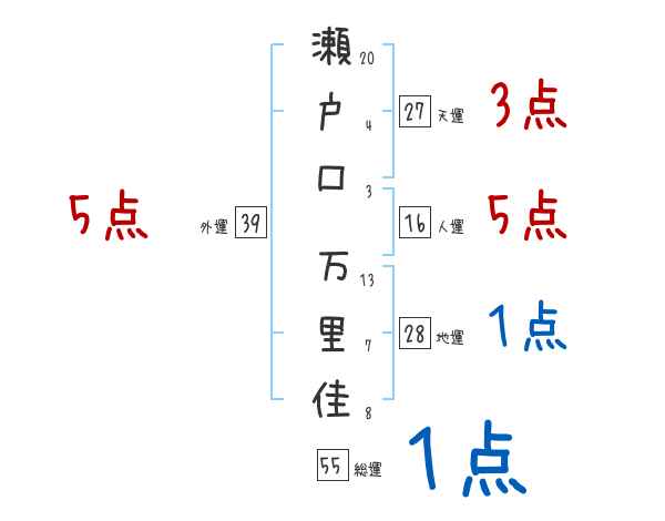 瀬戸口万里佳さんの画数の鑑定結果