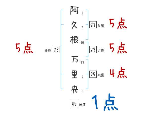 阿久根万里央さんの画数の鑑定結果