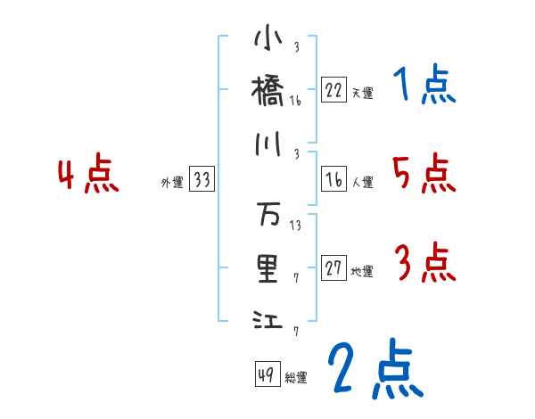 小橋川万里江さんの画数の鑑定結果