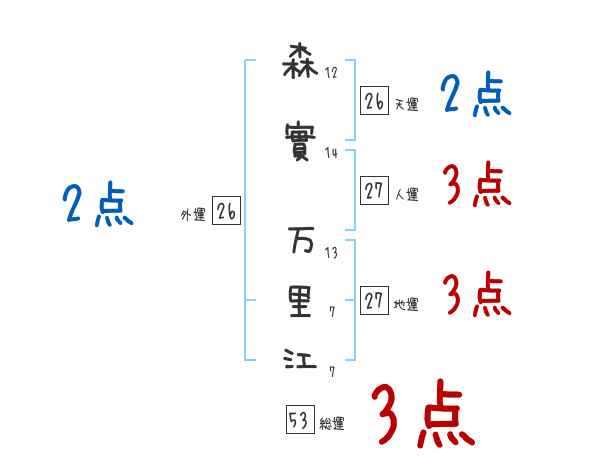 外運![]() | 森實万里江さんの外運は26画の2つ星!波瀾万丈かも。信頼できる人を大事にしましょう。 生活面を象徴する運勢です。外部から受ける影響力を表し、結婚運、家庭運や職場、環境への順応性を表します。 |