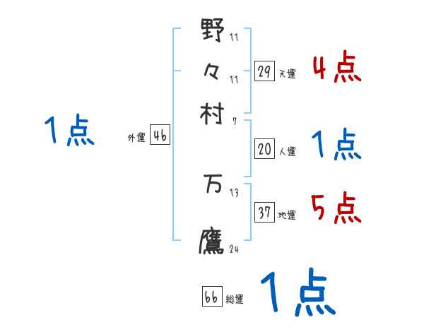 野々村万鷹さんの画数の鑑定結果