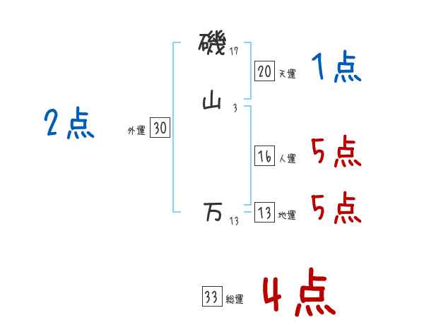 磯山万さんの画数の鑑定結果