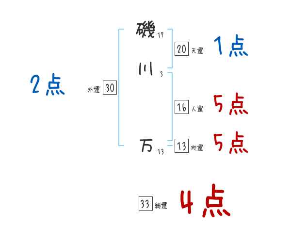 磯川万さんの画数の鑑定結果