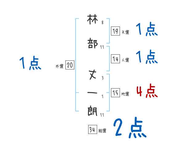 天運![]() | 林部丈一朗さんの天運は19画の1つ星!優れた才能を持ちますが、協調性が足りないことも。周りの人と協力する事を意識しましょう。 家系が持つ宿命的な運勢を表します。祖先から受け継いだ苗字ですので自分の力が及びません。家柄を象徴します。 |